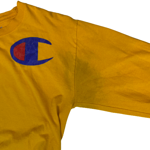 【チャンピオン ロゴ ロンT オレンジ系 M 古着 Champion】