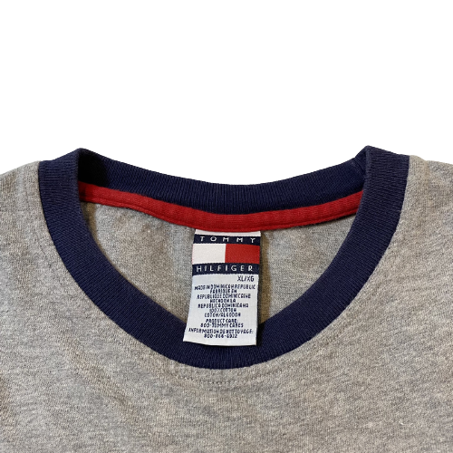 【トミーヒルフィガー 85 プリント ロンT XL グレー 古着 TOMMY HILFIGER】