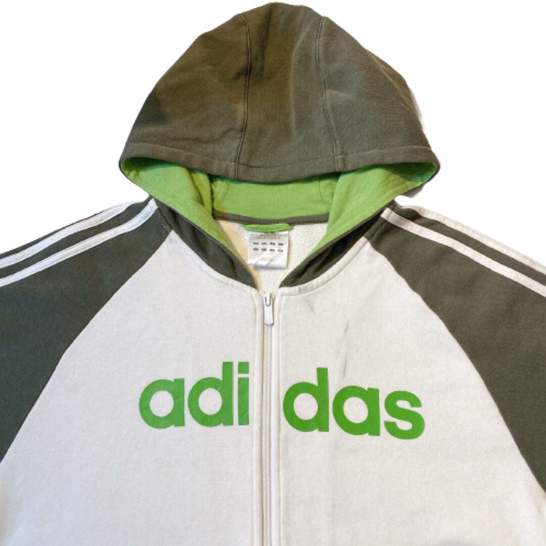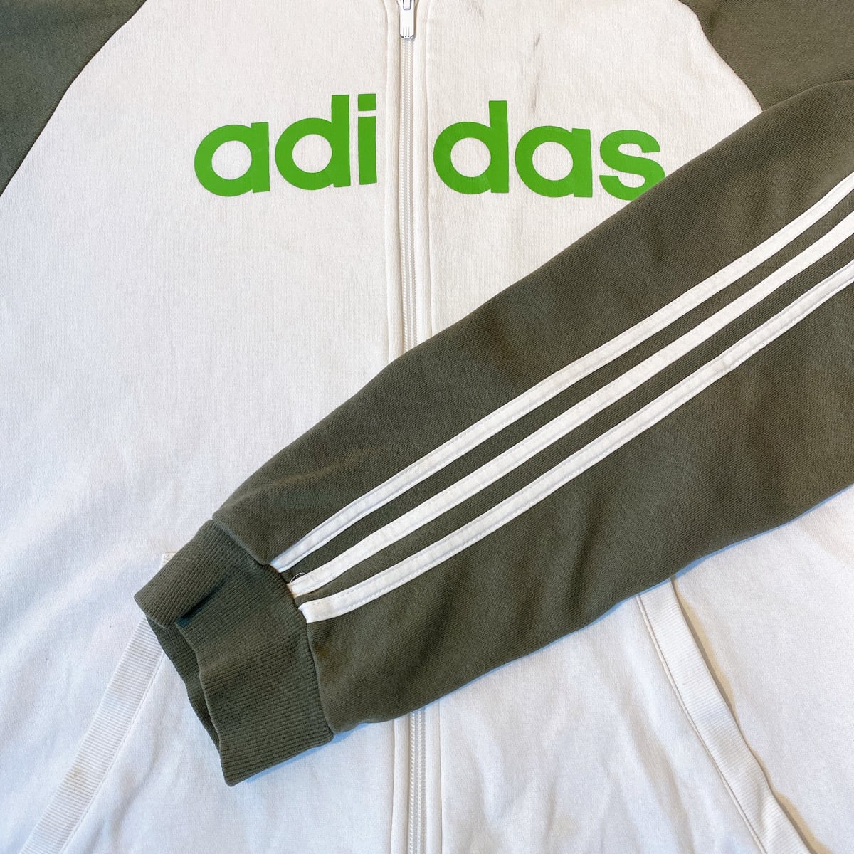 アディダス ライン付き 薄手 パーカー オフホワイト カーキ 裏地 グリーン L 古着 adidas | Hi dude! Vintage International アメリカ古着ハイデュードヴィンテージ