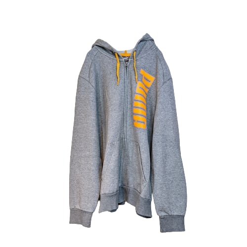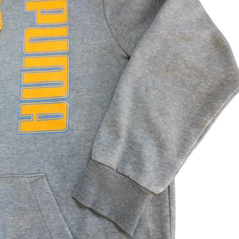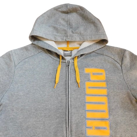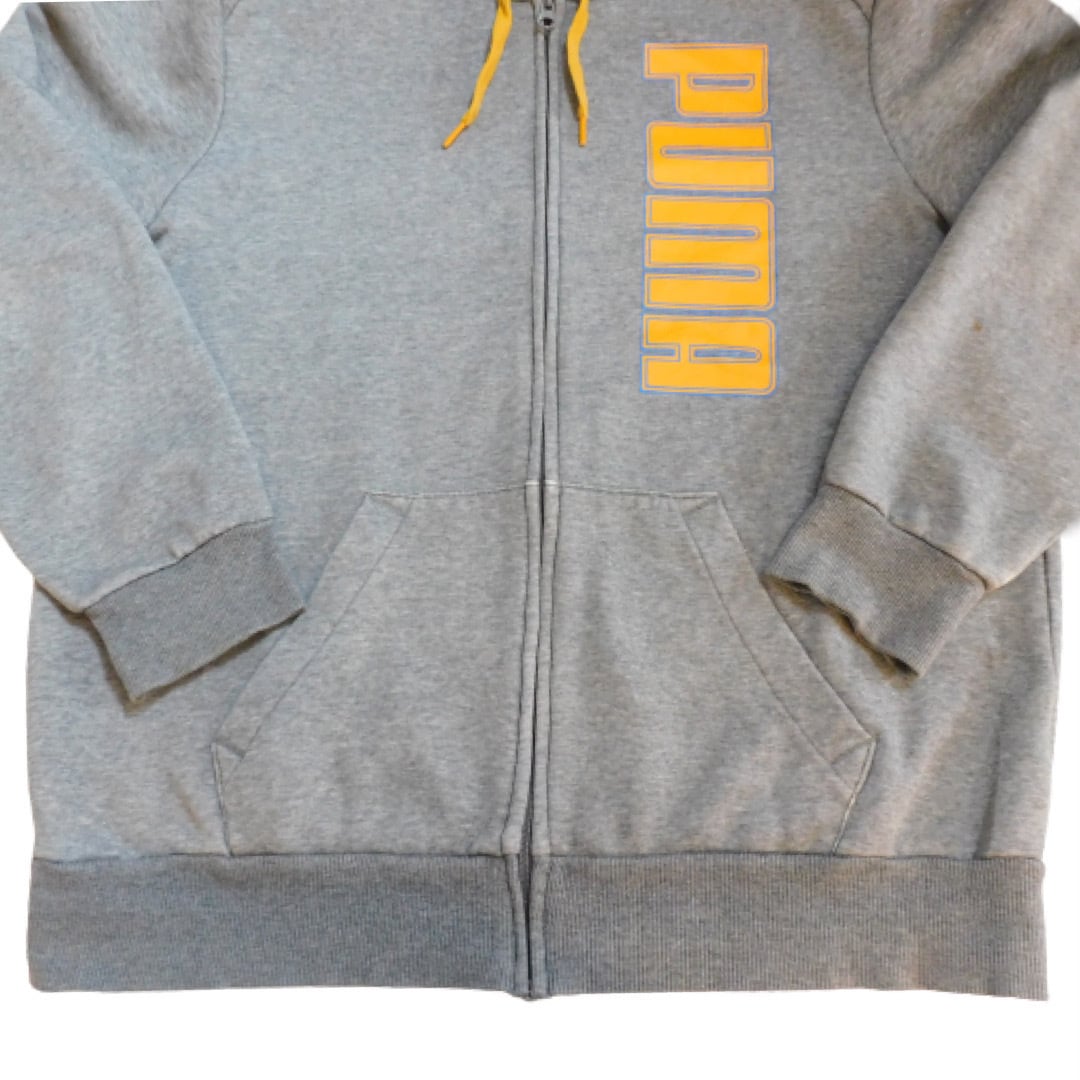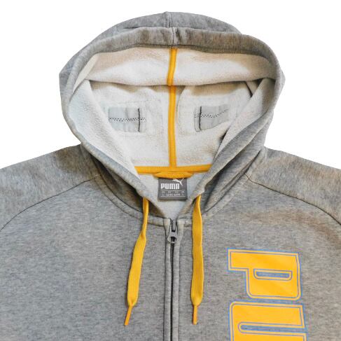 【プーマ イエロー ロゴ フルジップ パーカー グレー L 古着 PUMA】